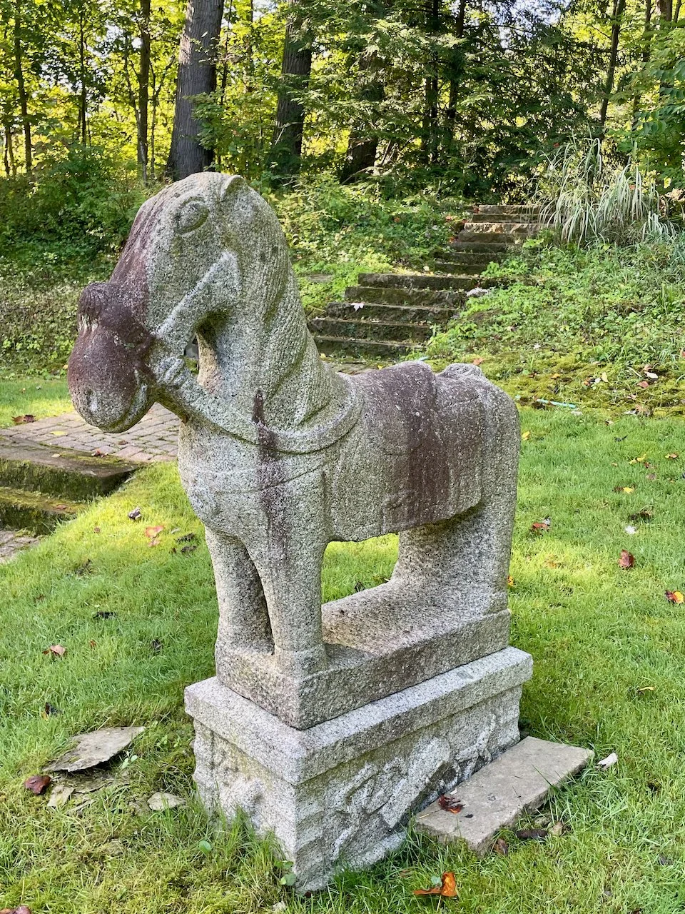 Magnificent country manor estate in Chagrin Falls, Ohio. Part 1 sale features fine jewelry including diamond pendants and earrings, opals, brooches, pocket watches, ladies Gucci and Movado watches, and a collection of sterling silver tableware. A fine collection of original artwork, prints, and sculptures including a George Glenn Newell original painting (American 1870-1947). Other artists include William Mahoney, Clemens, Albert Insley, Robert Girrard, Roger William Ellenberger, Mark Hopkins, and John Rogers. Large collection of outdoor statuary including 2 bronze sculptures by Jill Cowie Sanders, water fountains, and estate pots. Also travel desks, clocks, glassware by Tiffany, Schotts and Waterford, kitchenware, books, and more.